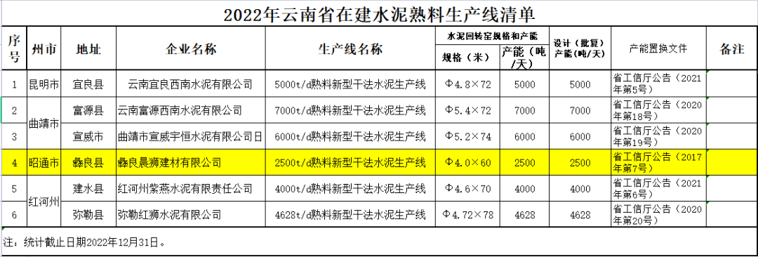 云南工信厅发布的《2022年云南省正在建新建水泥熟料出产线清单》显示,次要扶植一条2500t/d新型干法熟料水泥出产线MW纯低温余热发电系统,