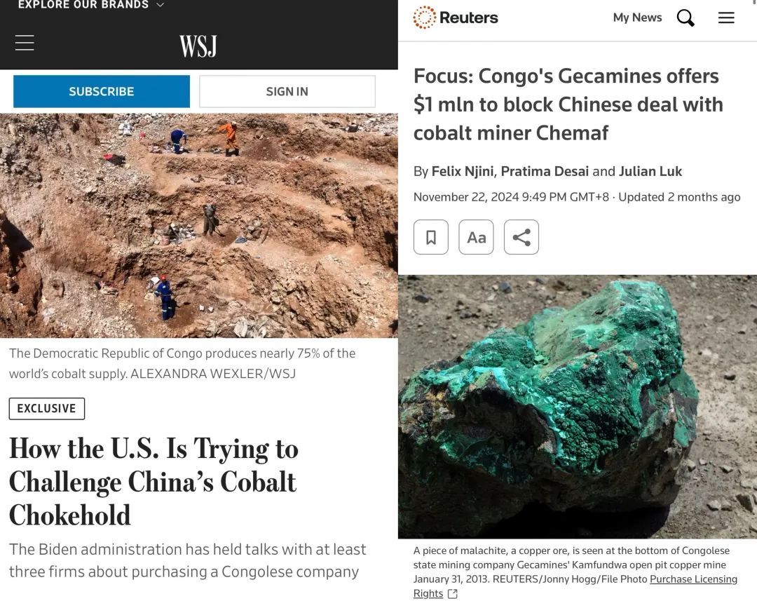 2024年7月英国《金融时报》曾披露,美国为阻止中国对关键矿产的控制,鼓励刚果(金)国有控股矿业公司Gecamines审查这笔交易。2024年11月,路透社跟进报道称,Gecamines为阻止刚果(金)与中国的钴矿项目交易提供了100万美元。